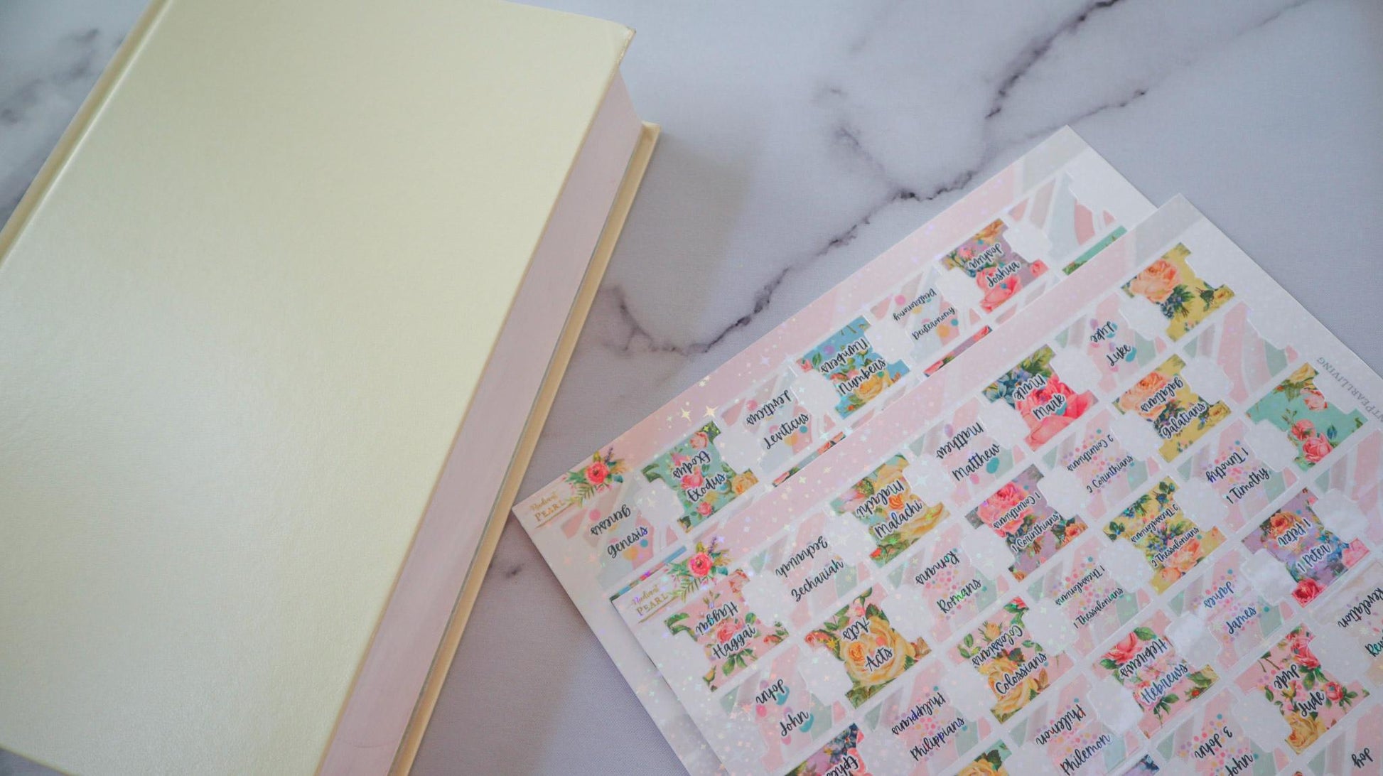 This striking and colorful design is fearlessly inspired by the Radiant and exquisite new collection and designs coming to you. You can now have this set shipped to you or print your own Bible tabs.